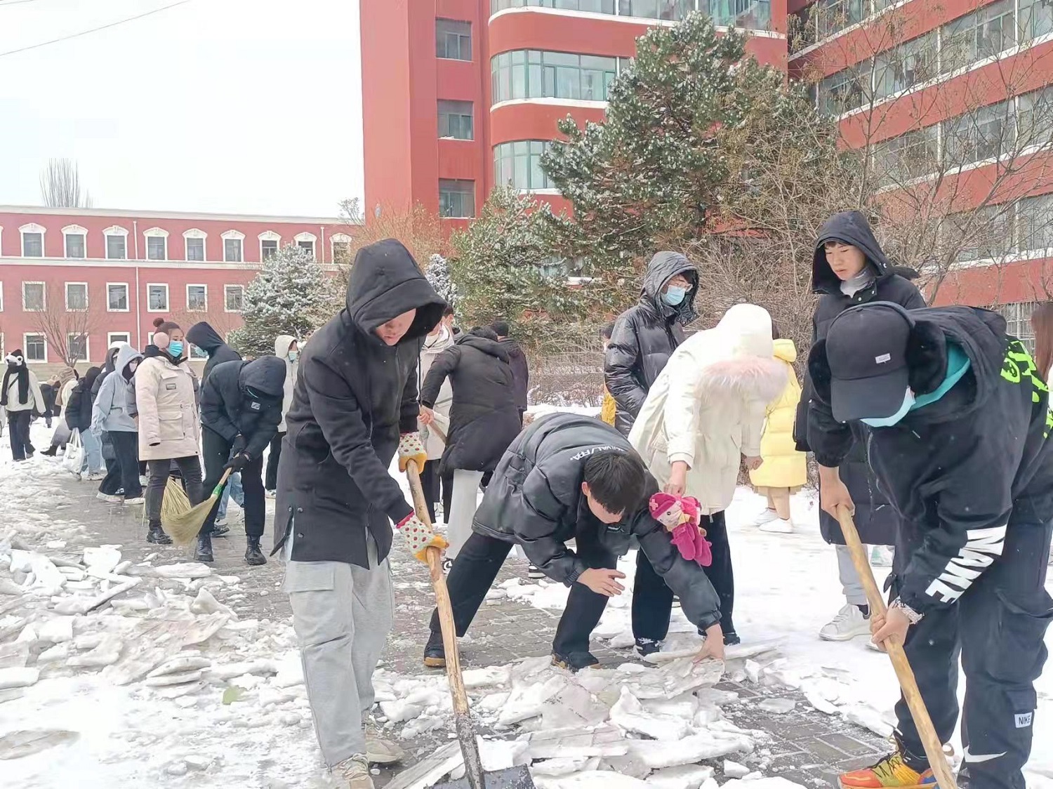 雪景雖美,但比雪景更美的是全校干部師生忙碌的身影。大家以雪為令,全情投入到清掃積雪的活動中。“一言一行樹形象,一舉一動見文明”,大家不畏嚴寒,浴“雪”奮戰,享受到了為他人服務的快樂,體現了團結協作和無私奉獻的同大精神,踐行了勞動育人的教育理念?!半m然手腳凍僵了,但同學們的心是熱的。我們把路面清掃干凈了,老師和同學出行就安全了。”在冰天雪地里,這樸實的話語更加溫暖人心,更加令人感動,同大學子好樣的!