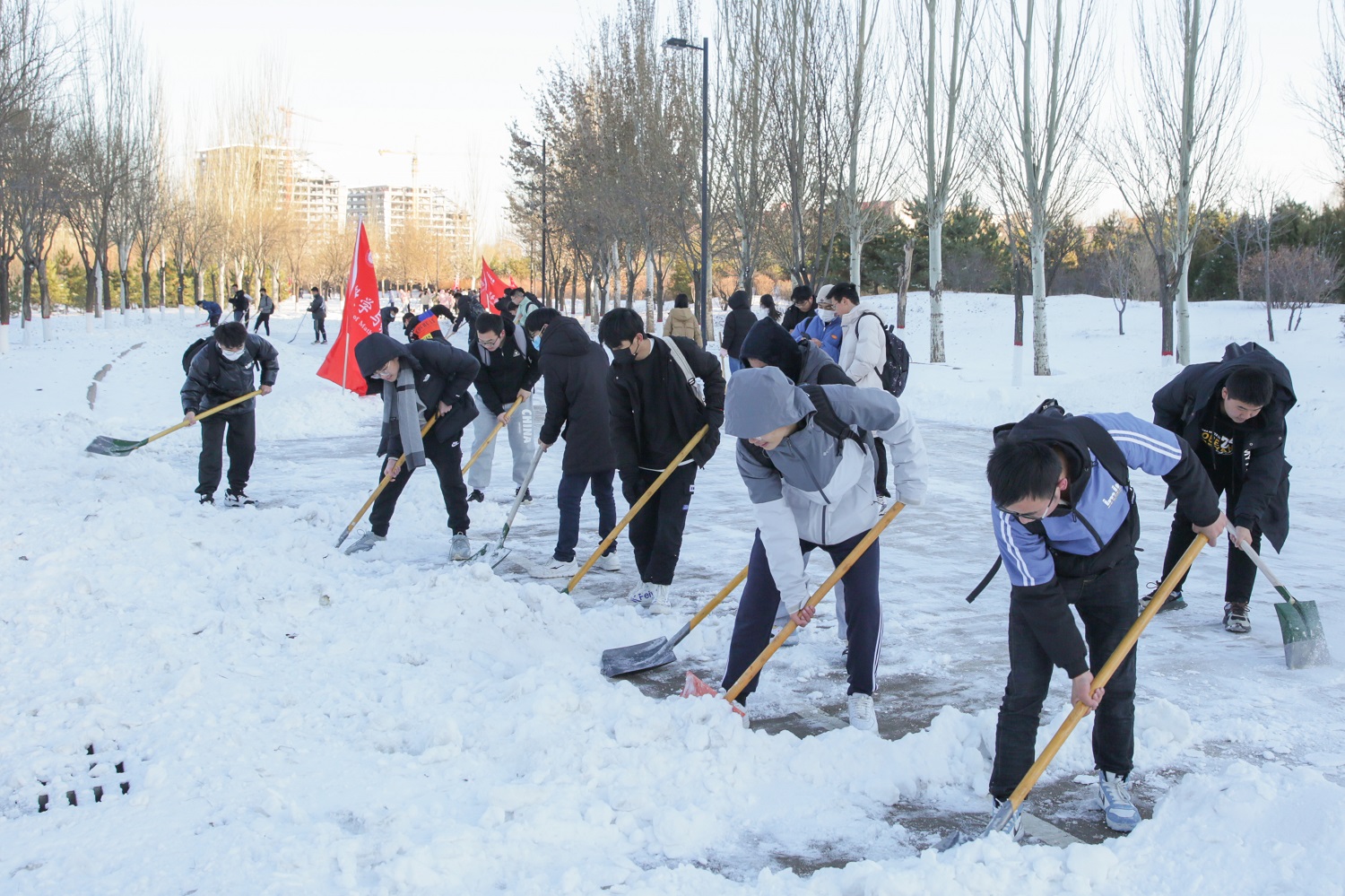 然而,這場突如其來的大雪在帶給我們歡樂的同時,也給廣大師生的出行帶來諸多不便。為盡快掃雪除冰、暢通道路、消除安全隱患,確保師生在校安全和教育教學正常運行,學校愛國衛生運動委員會迅速反應,對校園積雪清掃工作作出全面部署。按照《學院衛生責任片區》劃分的責任區,兩校區各學院、部門指定專人負責,積極組織師生快速行動,積極投入積雪清掃行動。