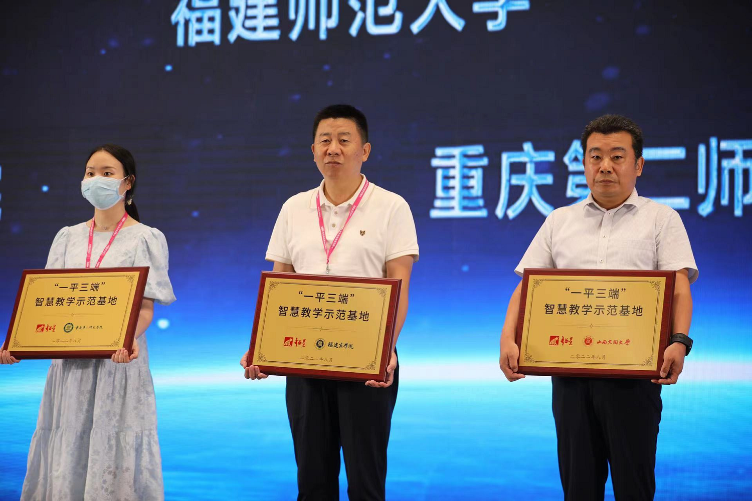 論壇舉行了“一平三端”成果展示和授牌儀式。我校與華東師范大學、北京工業大學、天津醫科大學、南京航空航天大學、南京師范大學、成都理工大學、西安郵電大學等共32所高校被授予“一平三端”智慧教學示范基地。我校作為山西唯一一所入圍高校,由校黨委常委、翟大彤副校長上臺接受牌匾。