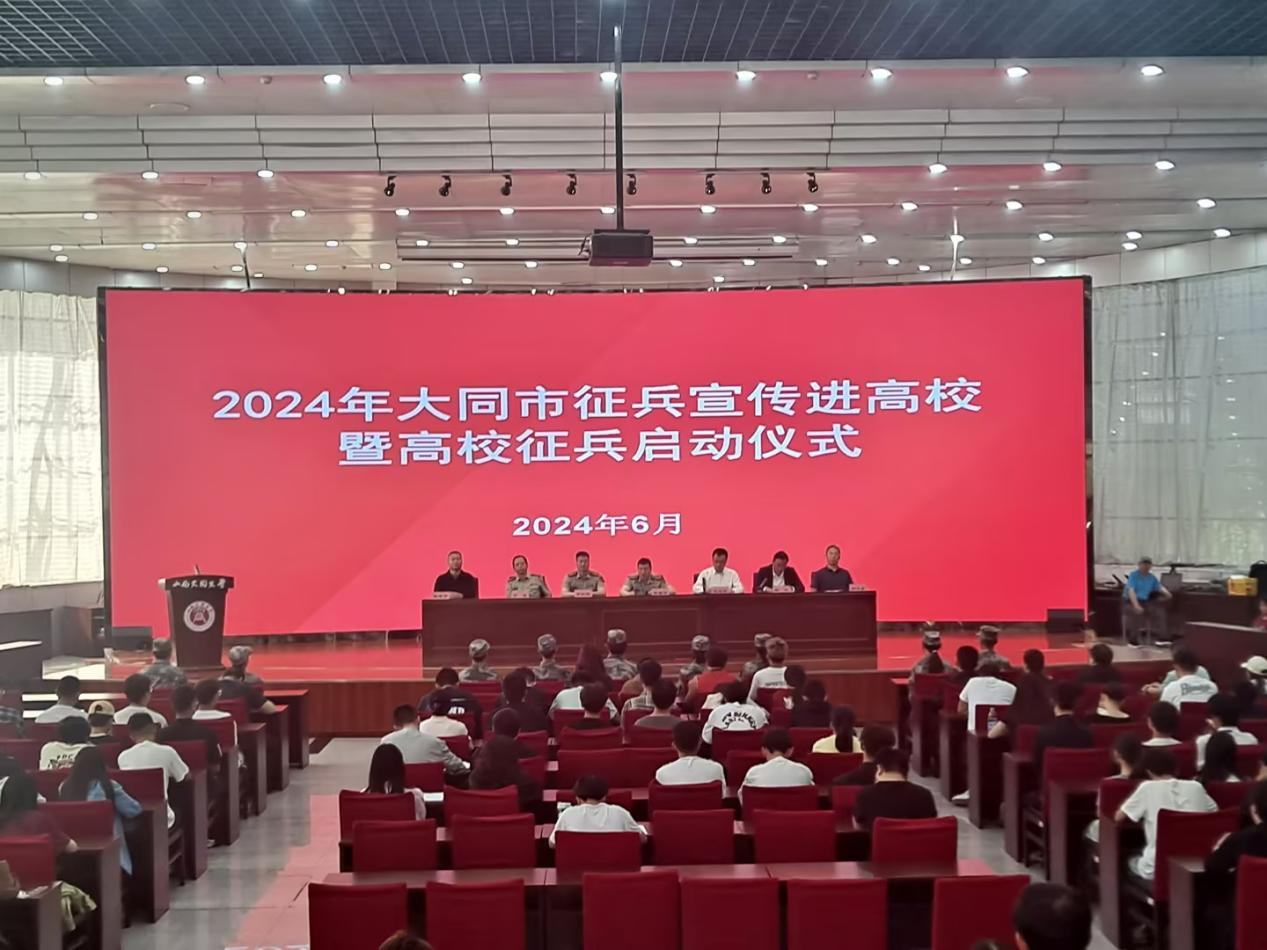 ? 6月7日,2024年大同市征兵宣傳進(jìn)高校暨高校征兵啟動(dòng)儀式在慎思樓報(bào)告廳舉行。大同市征兵工作領(lǐng)導(dǎo)小組副組長(zhǎng)、大同軍分區(qū)大校副司令員吳重清,山西大同大學(xué)黨委副書(shū)記寇福明,大同市征兵辦公室主任、大同軍分區(qū)動(dòng)員處上校處長(zhǎng)李玖恒,校軍事教研室主任王成,大同市平城區(qū)征兵辦公室主任、平城區(qū)人武部上校部長(zhǎng)萬(wàn)軍及大同市各高校征兵管理工作負(fù)責(zé)人參加啟動(dòng)儀式。校學(xué)生工作部部長(zhǎng)楊容主持儀式。
