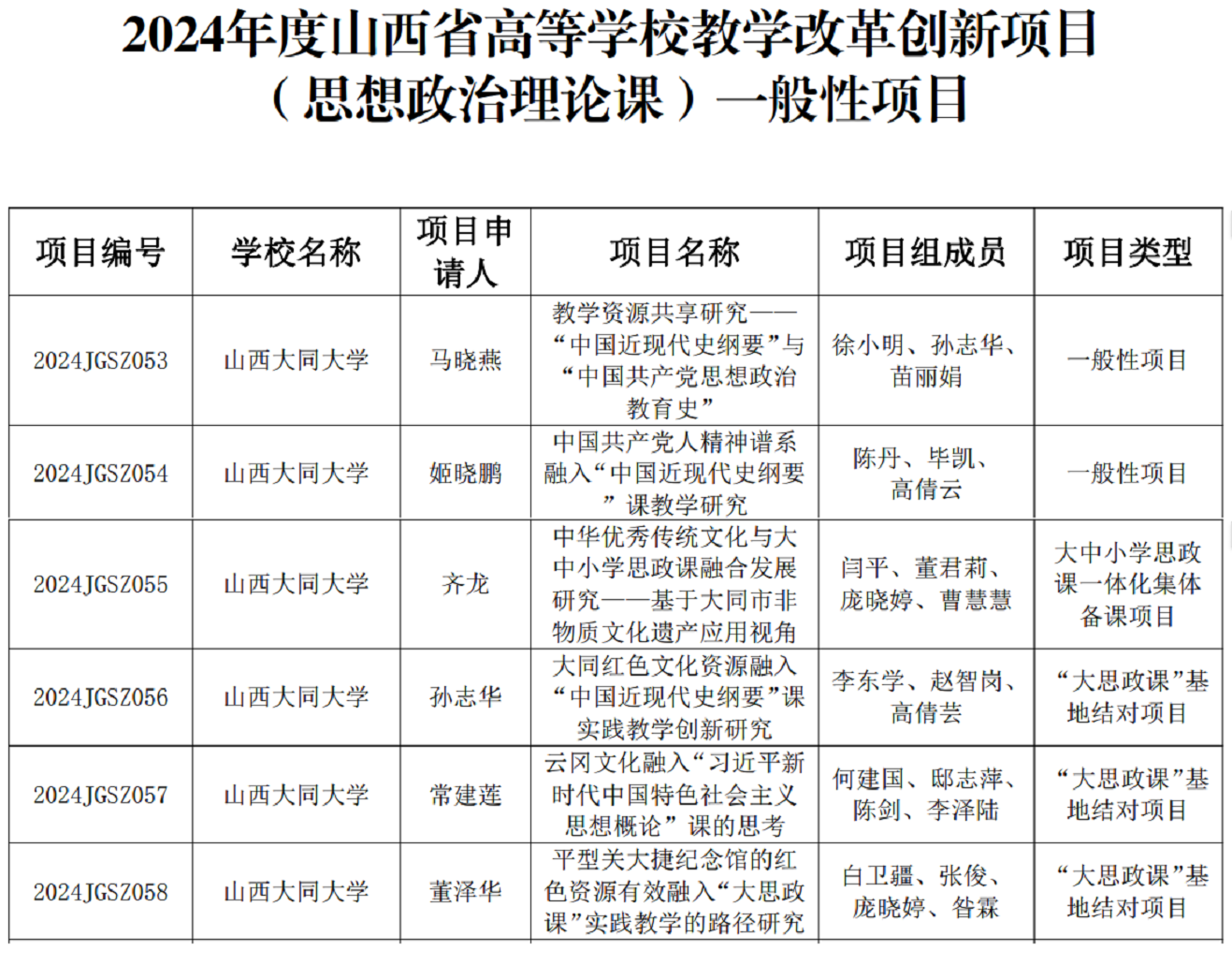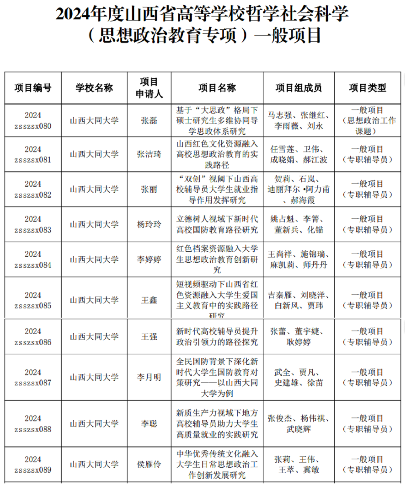 近日,山西省教育廳公布了2024年度山西省高等學(xué)校哲學(xué)社會(huì)科學(xué)研究項(xiàng)目(思想政治教育專(zhuān)項(xiàng))、山西省高等學(xué)校教學(xué)改革創(chuàng)新項(xiàng)目(思想政治理論課)的立項(xiàng)名單,我校獲批2024年度山西省高等學(xué)校哲學(xué)社會(huì)科學(xué)研究項(xiàng)目(思想政治教育專(zhuān)項(xiàng))一般性項(xiàng)目10項(xiàng)、2024年度山西省高等學(xué)校教學(xué)改革創(chuàng)新項(xiàng)目(思想政治理論課)一般性項(xiàng)目6項(xiàng)。