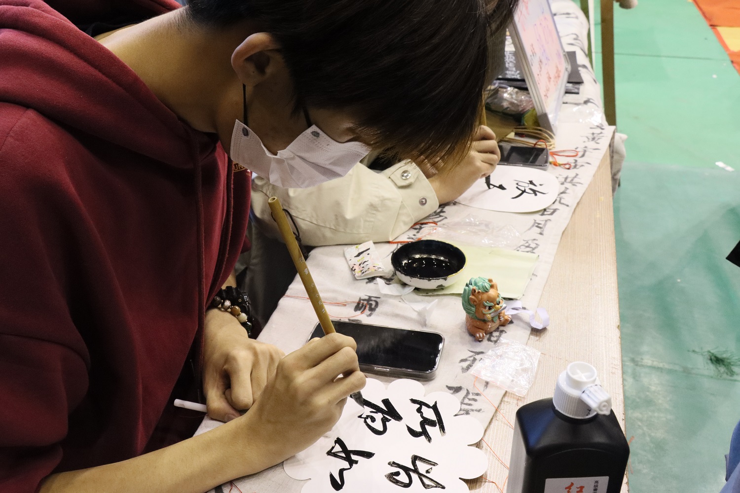 ? 活動當(dāng)天,體育館內(nèi)裝飾一新,張燈結(jié)彩,彩旗飄揚(yáng),氛圍濃厚。同學(xué)們臉上洋溢著青春的笑容,三五成群地穿梭于各個活動區(qū)域之間。在“才藝展示區(qū)”,表演者紛紛登臺亮相,展示了各自在歌曲、舞蹈、朗誦、樂器演奏等方面的才華,贏得了陣陣掌聲和喝彩聲;“傳統(tǒng)工藝區(qū)”也備受矚目,書法社的同學(xué)們手法嫻熟地展示著中華優(yōu)秀傳統(tǒng)文化的魅力,大家紛紛駐足觀賞,并親自動手嘗試,感受傳統(tǒng)文化的獨特韻味;“動漫體驗區(qū)”各種經(jīng)典動漫IP琳瑯滿目,大家仿佛置身于一個充滿奇幻色彩的動漫世界,積極參與互動游戲,為動漫人物注入靈魂,使其更加生動有趣;在“趣味游戲區(qū)”,同學(xué)們盡情揮灑汗水,享受著游戲帶來的樂趣。