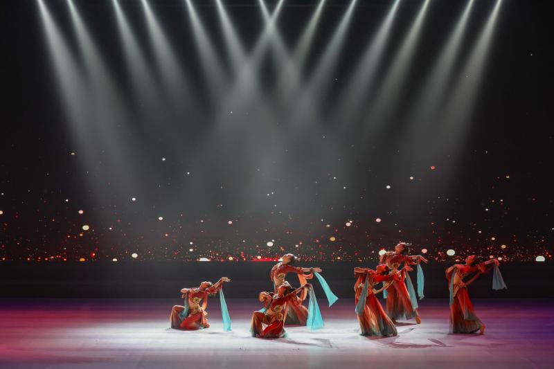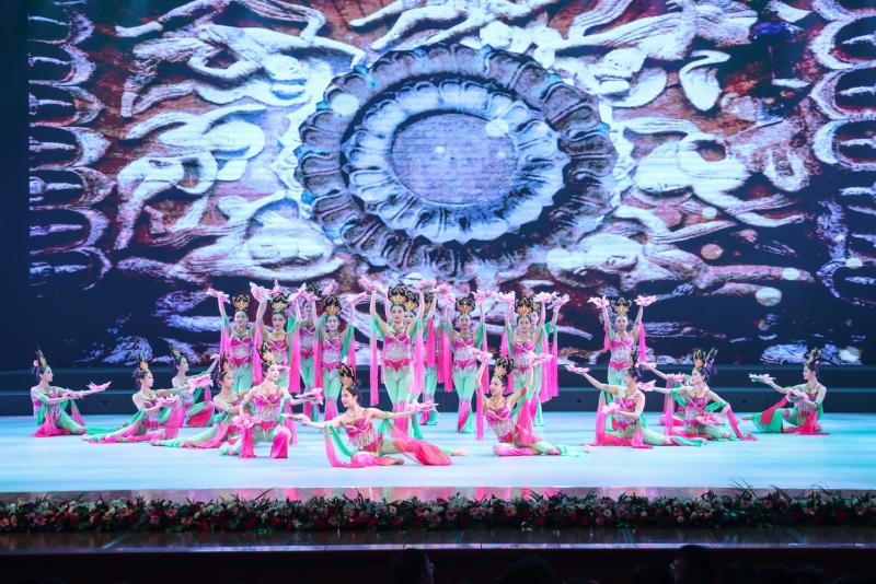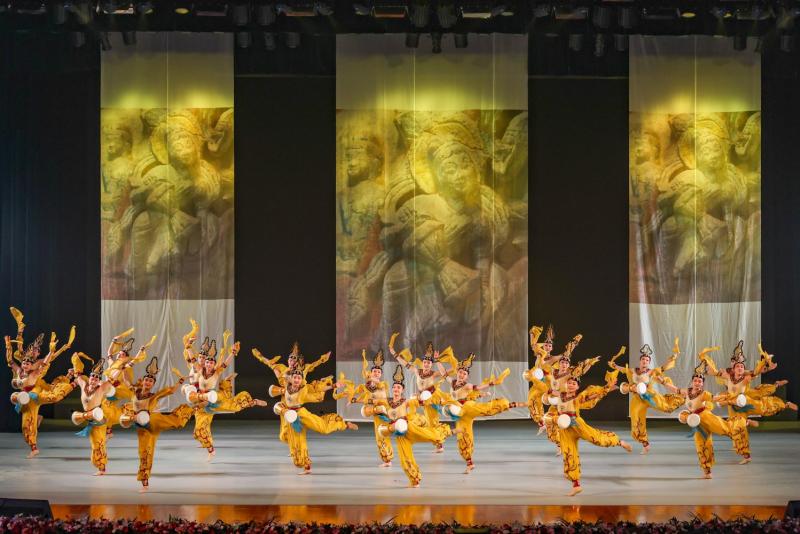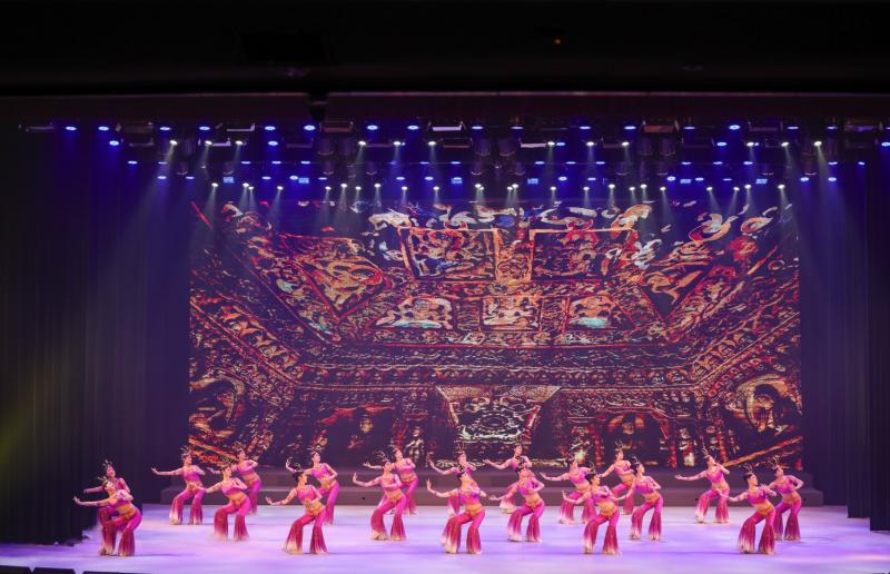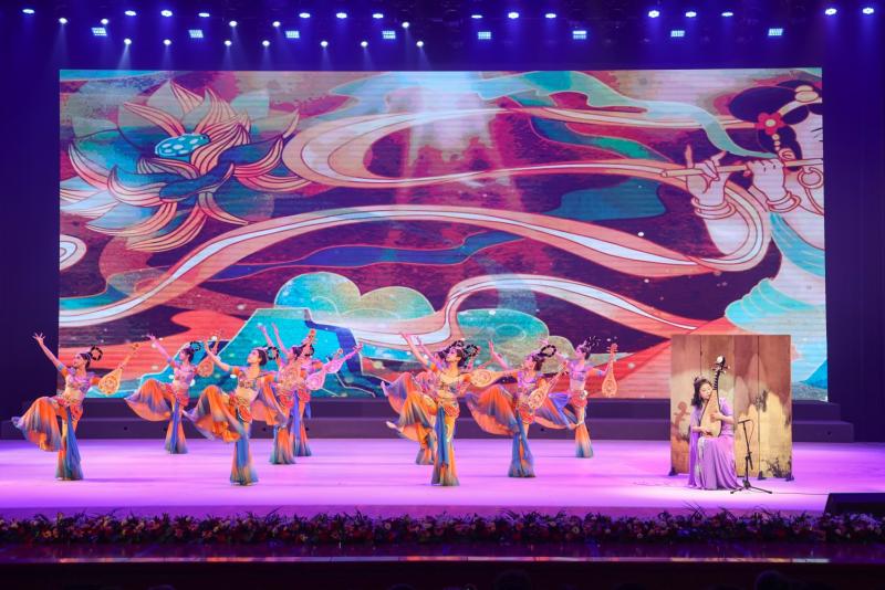 展演下半場有2首民樂原創(chuàng)作品和6部原創(chuàng)云岡舞。琵琶是云岡樂器圖像中胡樂器的代表,琵琶獨(dú)奏《云岡妙音》,力圖喚醒石窟中的云岡伎樂,再現(xiàn)曾為華夏音樂注入蓬勃生機(jī)的北魏之音。塤是云岡石窟樂器圖像中漢族雅樂器的代表,由塤演奏、箏演奏、獨(dú)唱、獨(dú)舞組成的節(jié)目《關(guān)山月》,為觀眾帶來一場穿越時空的對話。舞蹈《北魏雄風(fēng)》《鼓樂飛天》《六臂神舞》《六黛風(fēng)華》《束腰鼓舞》《團(tuán)蓮盛景》輪番上演,身著華麗服飾的舞者們,或以其英姿颯爽的身姿、或以其輕盈婀娜的舞步,從千年歷史畫卷中走出,通過舞蹈語言解構(gòu)石窟雕刻細(xì)節(jié),讓觀眾在沉浸式體驗(yàn)中感受云岡文化的力量。