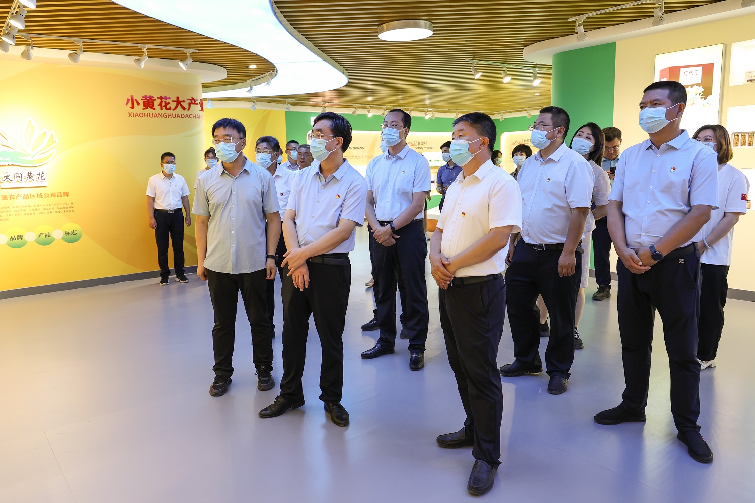 坐落于坊城新村的大同黃花坊城產(chǎn)業(yè)園,是以黃花菜為主、各類特色小雜糧為輔,集生產(chǎn)加工、倉(cāng)儲(chǔ)物流、質(zhì)量檢測(cè)、產(chǎn)地集散、展示銷(xiāo)售、品牌塑造、旅游服務(wù)等功能于一體的產(chǎn)業(yè)鏈延伸綜合性產(chǎn)業(yè)園,是大同市、云州區(qū)深入貫徹落實(shí)習(xí)近平總書(shū)記視察山西重要講話重要指示精神的具體實(shí)踐。趙水民一行來(lái)到這里,深度調(diào)研黃花產(chǎn)業(yè),詳細(xì)了解黃花產(chǎn)業(yè)的發(fā)展情況。黃花餅、黃花醬、黃花飲品……展示區(qū)的黃花產(chǎn)品琳瑯滿目,令人大為贊嘆。師生們切身感受到了小黃花“長(zhǎng)”成了大產(chǎn)業(yè),黃花真正成為了鄉(xiāng)親們的“致富花”。