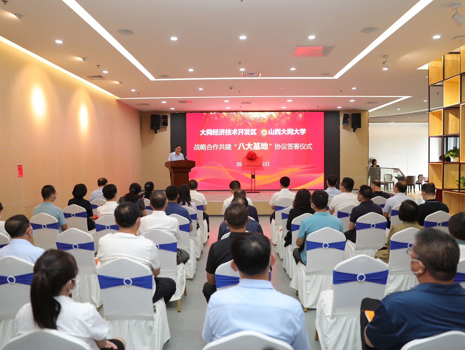 我校相關職能部門、學院負責人,大同經濟技術開發區相關部門負責人等參加簽約儀式。(文/王麗芹 楊玲 圖/王海明)
