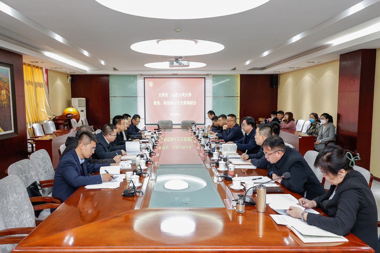 3月9日,大同市委組織部副部長鄭天杰一行來校,就深入學習宣傳貫徹黨的二十大精神,貫徹落實省委書記藍佛安調研大同講話和指示精神,市校同向發力、深化合作,強化教育、科技、人才支撐,唱好太原、大同“雙城記”等工作進行調研。校黨委書記趙水民、校黨委副書記寇福明出席活動。校黨委副書記劉洪主持調研座談會。