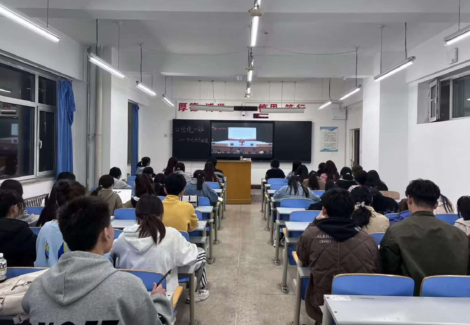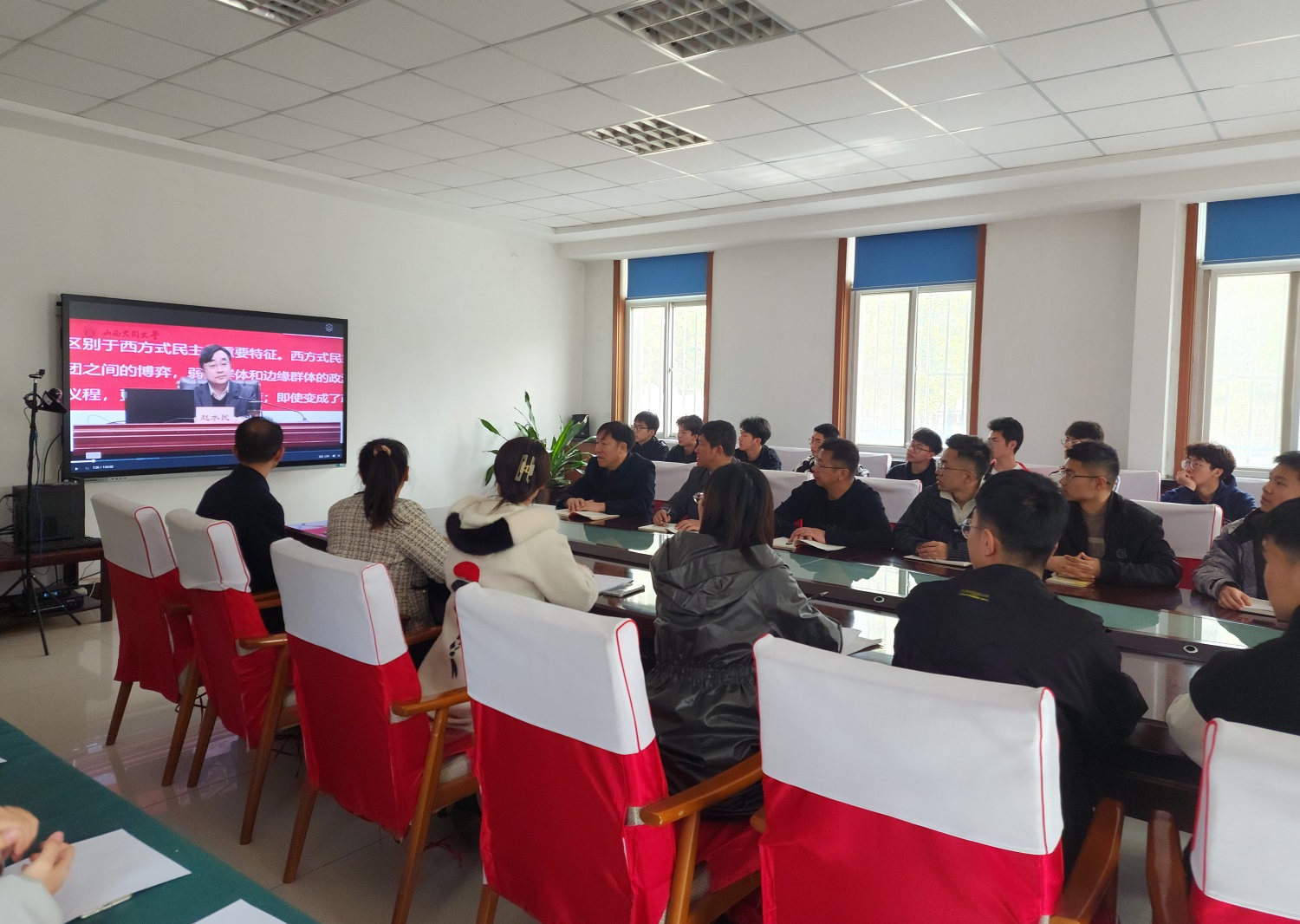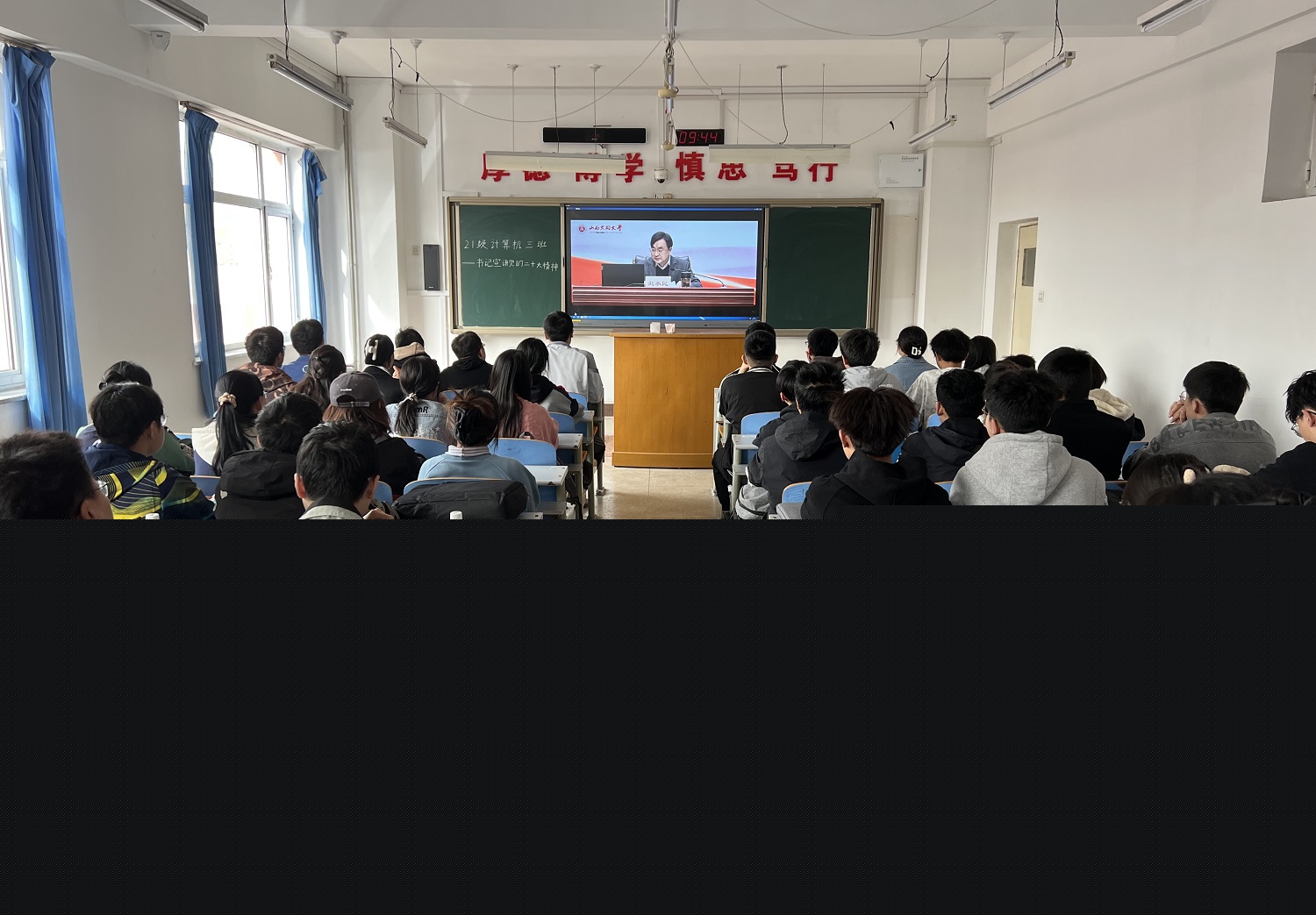 隨后,這堂宣講課在全校范圍內迅速鋪開,各基層黨委組織師生以集中觀看視頻的形式共同聆聽了趙水民書記的講授。