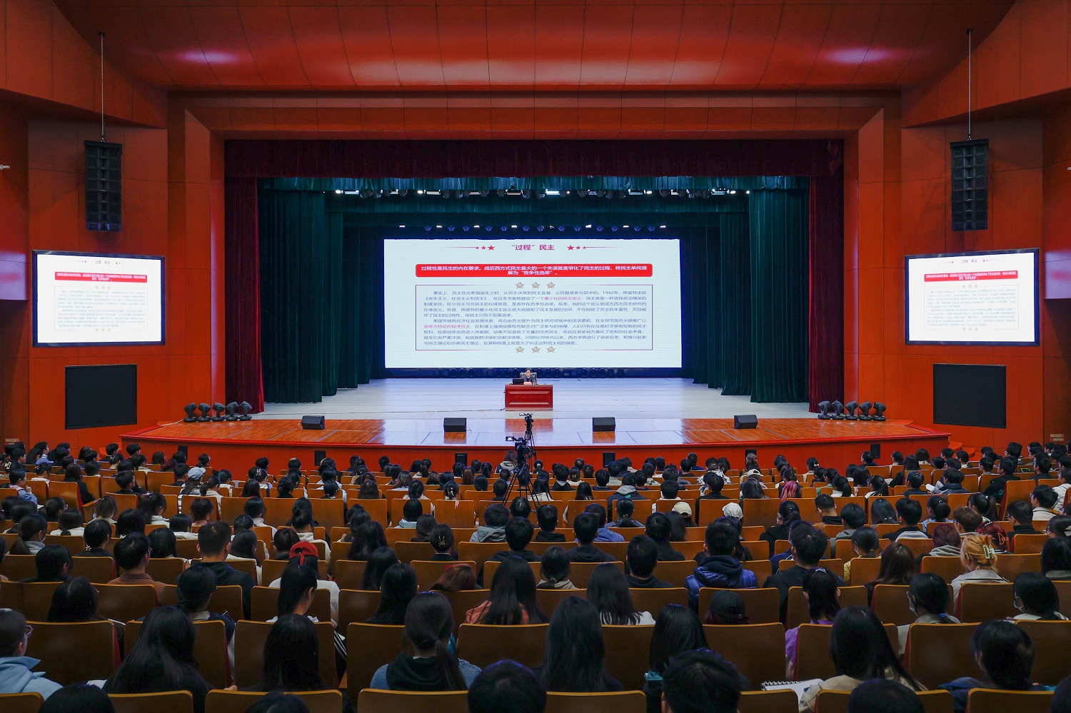 趙水民書記圍繞“發展全過程人民民主,切實保障人民當家作主”“全面推進中國式現代化,實現中華民族偉大復興”“堅定中國特色社會主義文化自信,共同建設中國特色社會主義文化強國”這三個重點,緊密結合青年學生的思想實際、學習實際和生活實際,舉例子、列數據、作對比、聊家常,講歷史、講形勢、講故事、講責任,激勵同學們按照習近平總書記在黨的二十大報告中對廣大青年的殷切寄語,牢記奮斗歷程,擔當歷史使命,立志做有理想、敢擔當、能吃苦、肯奮斗的新時代好青年。