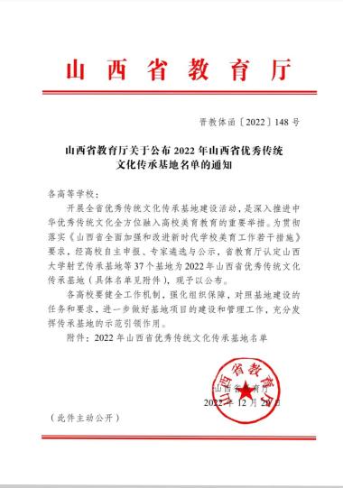 我校又獲批一個山西省優(yōu)秀傳統(tǒng)文化傳承基地