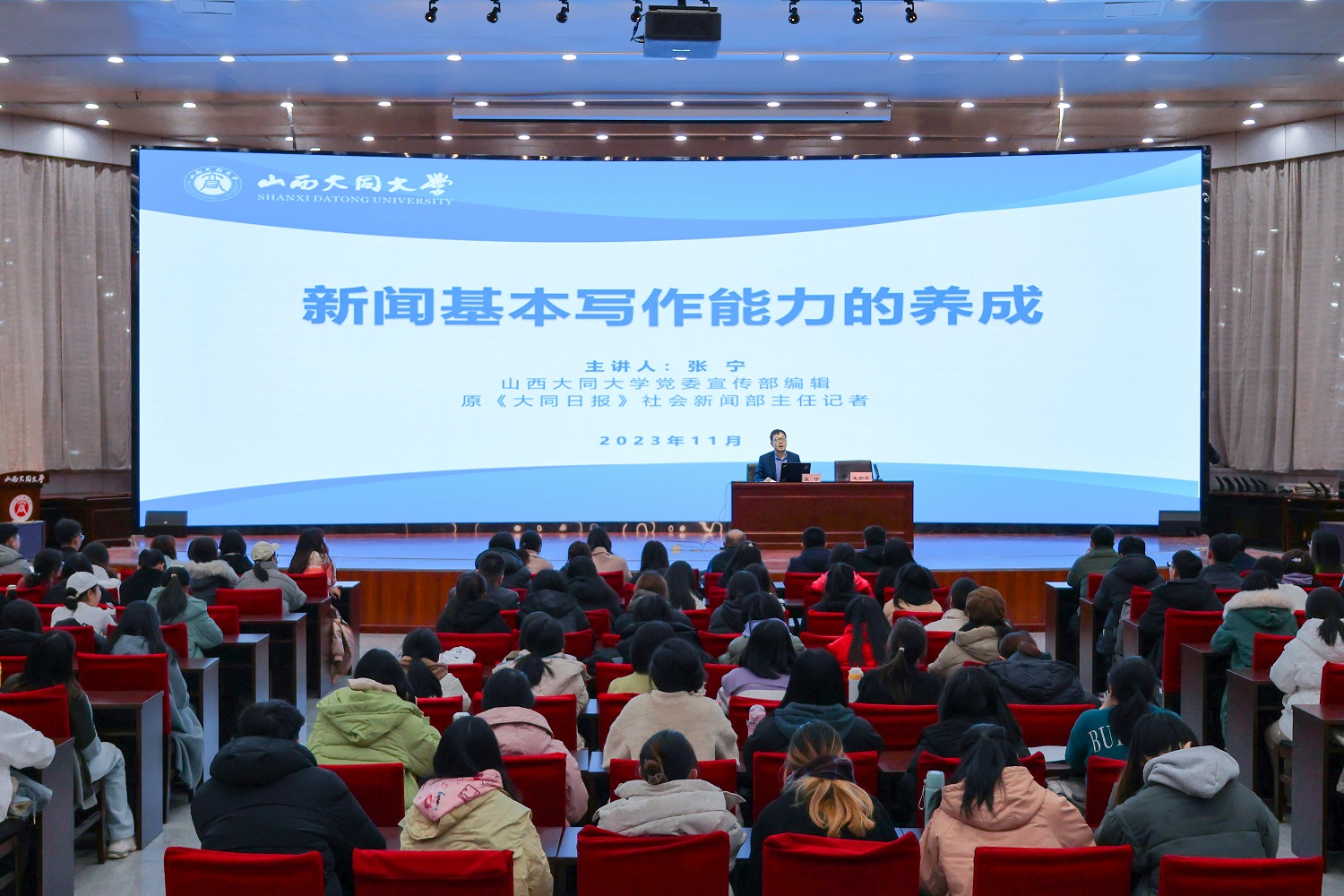 11月22日,山西大同大學(xué)校園新聞業(yè)務(wù)能力提升系列專題培訓(xùn)第一講在慎思樓報(bào)告廳舉行,黨委宣傳部編輯、原《大同日?qǐng)?bào)》社會(huì)新聞部主任記者張寧作《新聞基本寫作能力的養(yǎng)成》講座。各學(xué)院、各部門單位負(fù)責(zé)新聞宣傳工作人員,新媒體聯(lián)盟單位成員及指導(dǎo)教師共計(jì)400余人參加培訓(xùn)。附屬中學(xué)校長(zhǎng)、黨委宣傳部副部長(zhǎng)王麗芹主持講座。