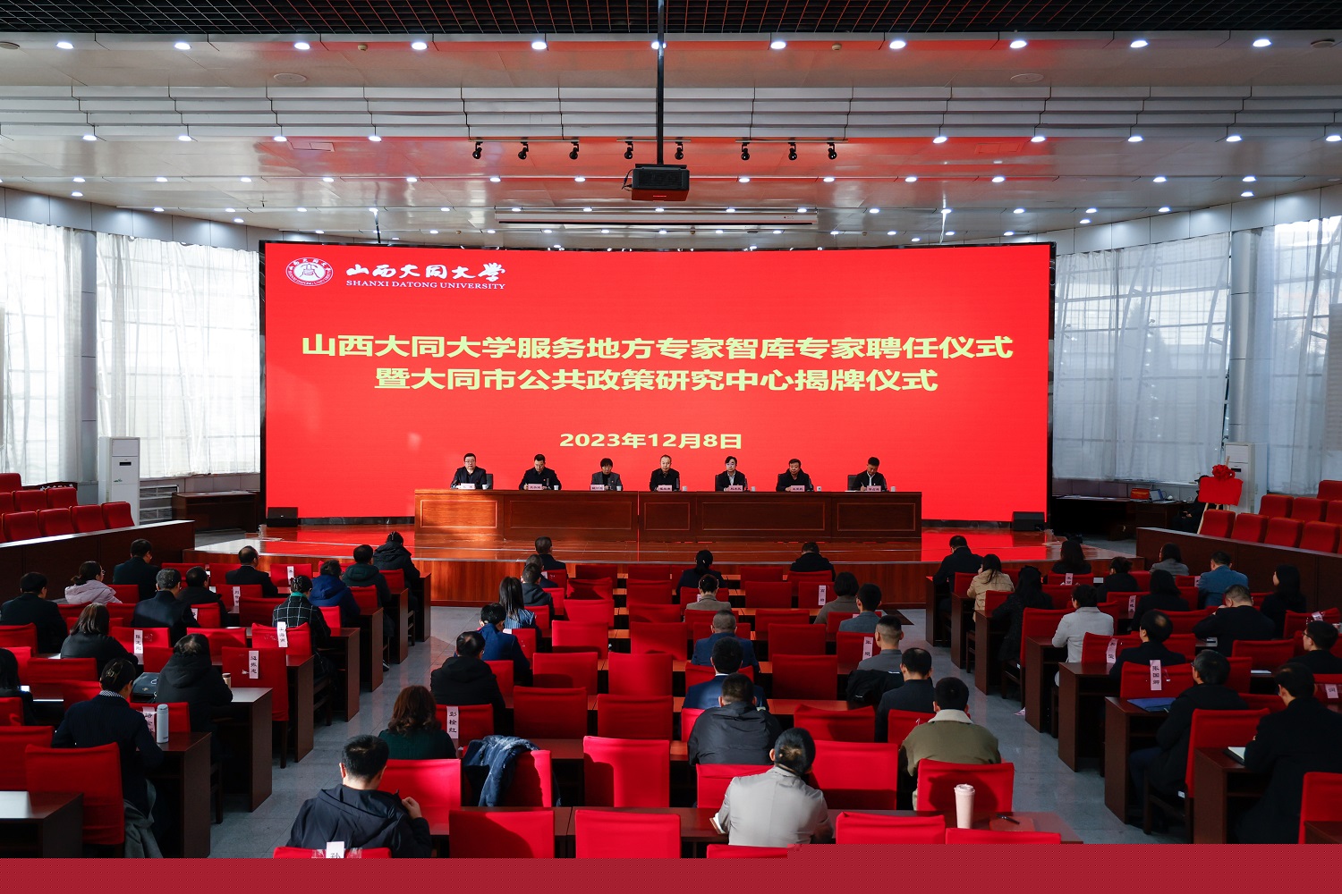 12月8日,山西大同大學服務地方專家智庫專家聘任儀式暨大同市公共政策研究中心揭牌儀式在我校慎思樓報告廳舉行。校黨委書記趙水民,校黨委副書記、校長姚麗英,大同市政府黨組成員、副市長翟永清,大同市政府發展研究中心主任王愛民,學校發展規劃合作部部長張健,中共大同市委政策研究室副主任常占庫出席儀式。校黨委常委、副校長史水鴻主持儀式。