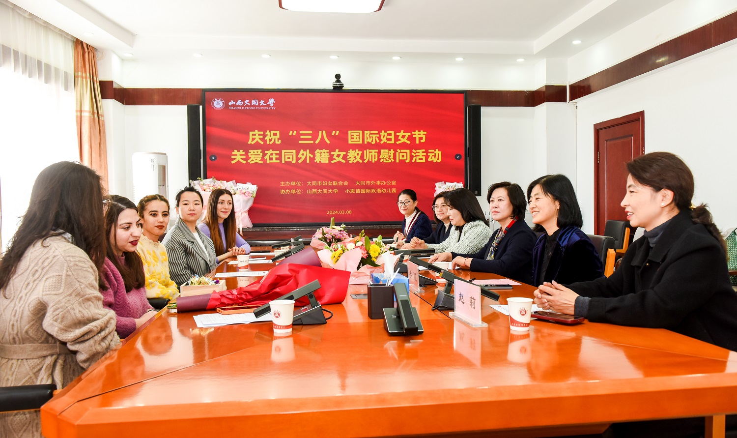 ?       38日,在第114個“三八”國際勞動婦女節來臨之際,為深入貫徹“大拜訪、大調研、大合作”工作要求,國際交流中心聯合市婦聯、市外事辦舉辦關愛在同外籍女教師慰問活動。大同市婦聯黨組書記、主席張學梅,大同市外事辦主任李霞,校工會主席候桂蘭,國際交流中心副主任趙莉等出席會議。我校俄羅斯籍女教師AikuiMkrtchian小恩笛國際雙語幼兒園摩洛哥籍外教Asmae(阿蘇美)、亞美尼亞籍外教TamaraMeliksetyan(塔瑪拉)作為外籍教師代表參加活動。
