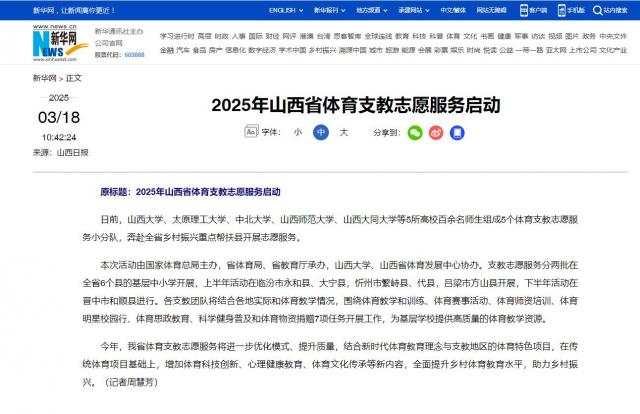 原標(biāo)題:2025年山西省體育支教志愿服務(wù)啟動